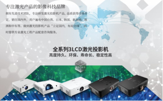 3台为3LCD工程短焦系列投影仪,该系列投影仪拥有高色彩亮度,WUXGA高清分辨率、卓越画质,1500000:1对比度,搭配0.43短焦镜头,可实现小空间大画面,360°自由灵活安装功能,应对不同投影角度,完美解决场地限制问题。